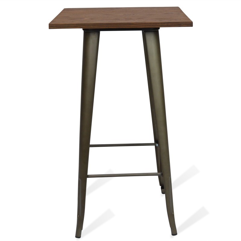 <p>- Tavolo di design ideale per sgabelli o mangia in piedi.<br /><span>- Tavolo vintage.</span><br />- Fabbricato in metallo.<br /><span>- Top in legno.</span><br /><br /><strong>Dimensioni</strong>:<br /><br /><span>- Larghezza: 60 cm.</span><br /><span>- Profondità: 60 cm.</span><br /><span>- Altezza: 105 cm.</span></p>