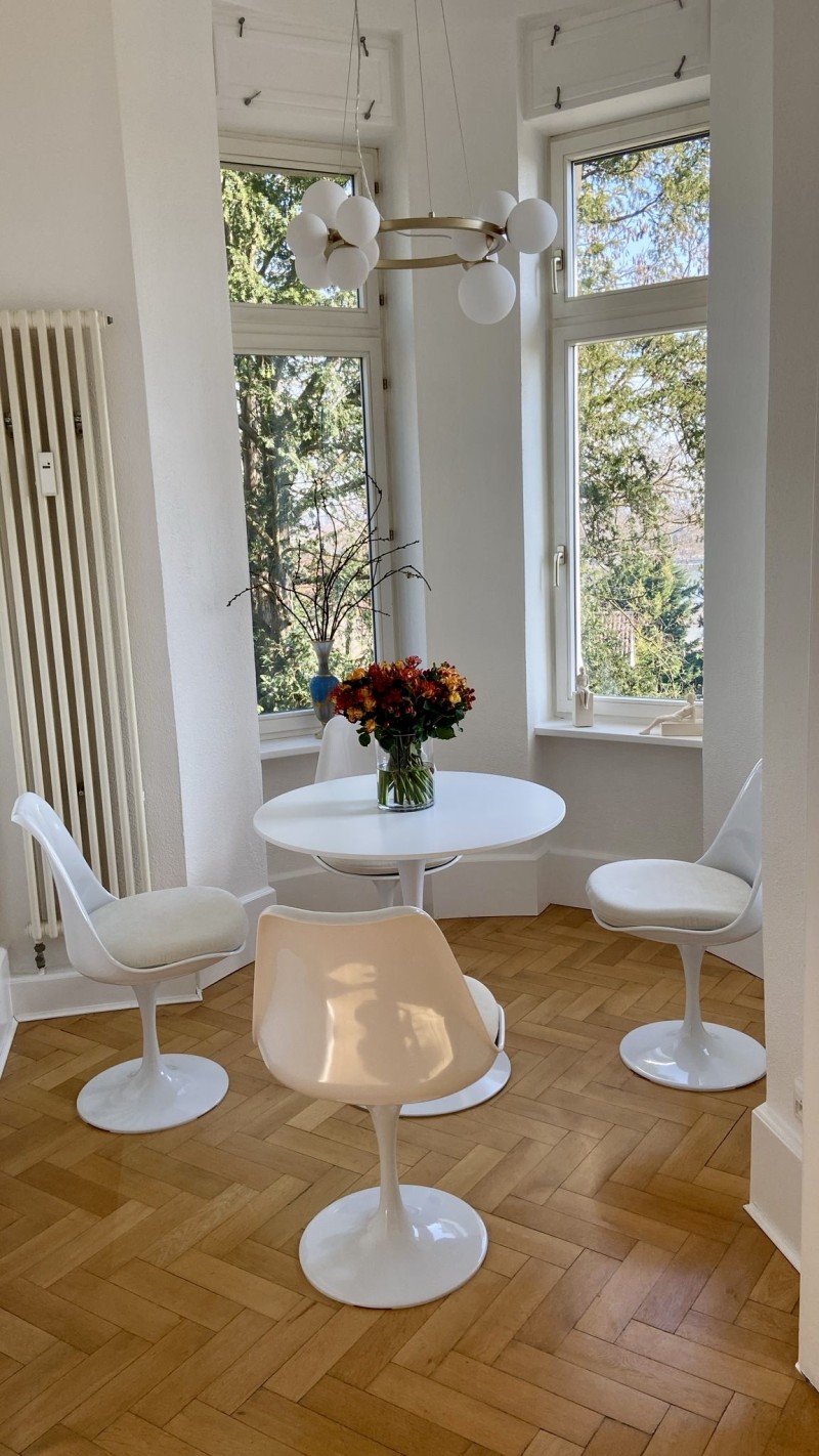 Il tavolo Tulip Strato si ispira al famoso tavolo di design Dining Tulip di Eero Saarinen del 1956, famoso designer talentuoso ed innovatore del XX secolo. La semplicità del suo design darà ai vostri spazi un fascino unico di grande eleganza. La struttura con base centrale molto resistente offre libertà di movimiento per le gambe e di spazio per la disposizione delle sedie attorno a sè. Il Top in MDF apporterà ai vostri ambienti un tocco di delicatezza eccezzionale adattandosi perfettamente con differenti stili decorativi.