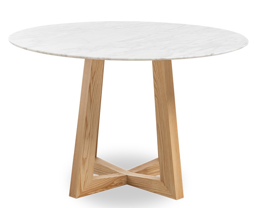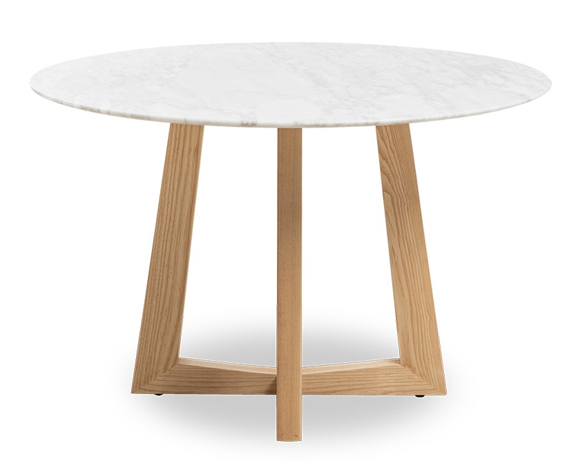 <p>Il suo piano in marmo bianco di Carrara gli conferisce quel tocco moderno e, se abbinato alle gambe in legno di frassino, creano un tavolo minimalista ideale.</p>