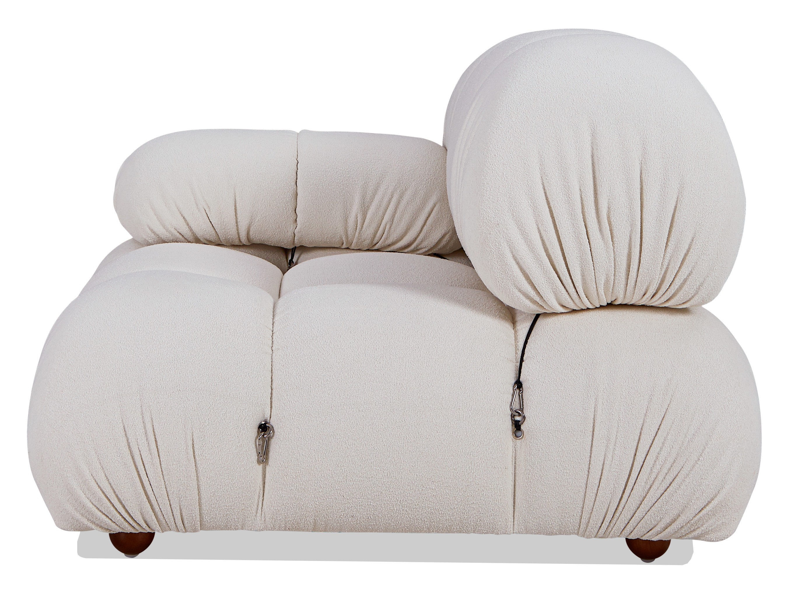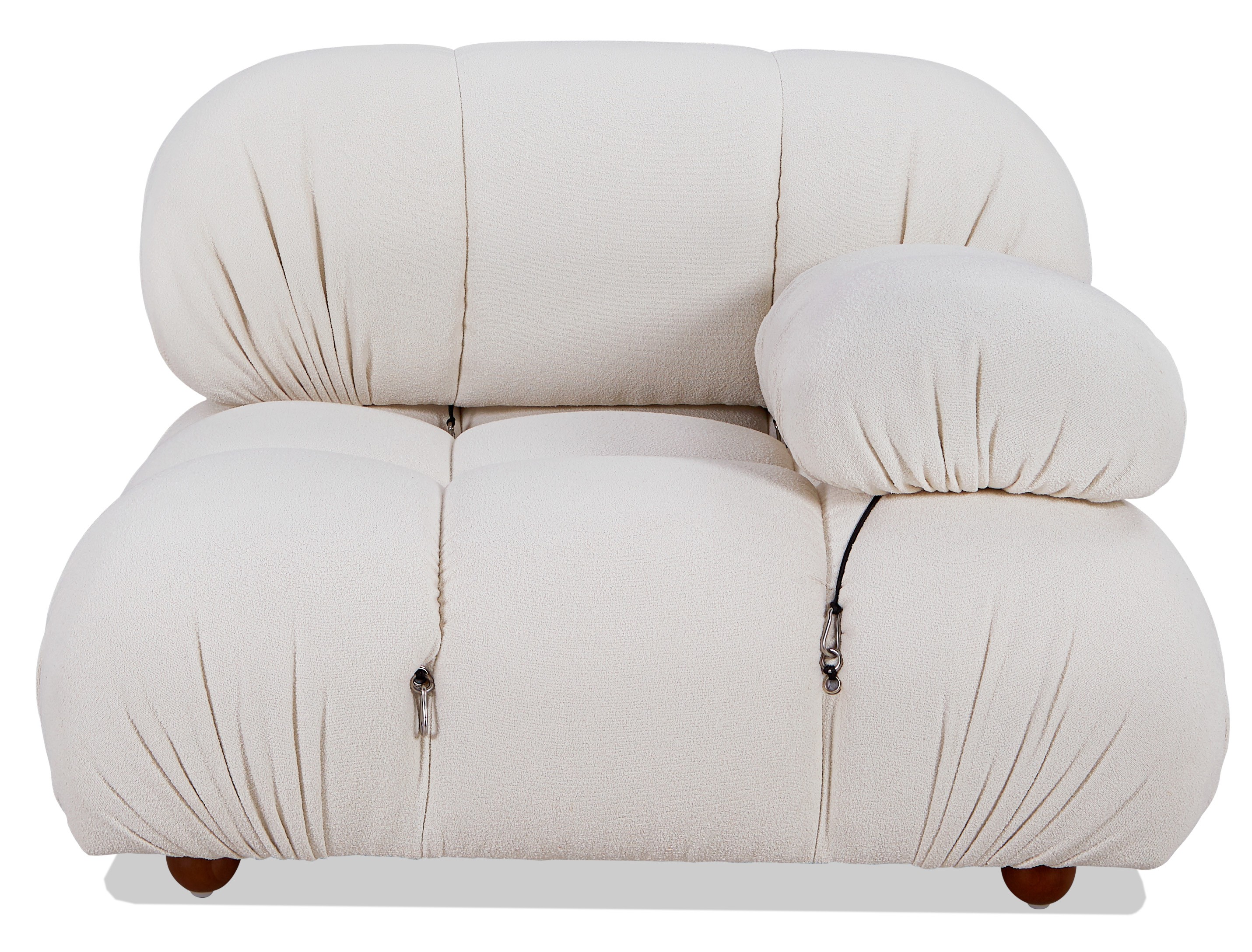Il rivestimento in bouclé, realizzato con materiali di alta qualità, conferisce al divano Laurel una texture morbida e lussuosa. La tecnologia del bouclé è riconosciuto per la sua resistenza e durevolezza, che garantisce la qualità di questo divano in ogni momento. Inoltre, la sua solida struttura e i suoi cuscini imbottiti offrono un sostegno eccezionale per un'esperienza di riposo impareggiabile.