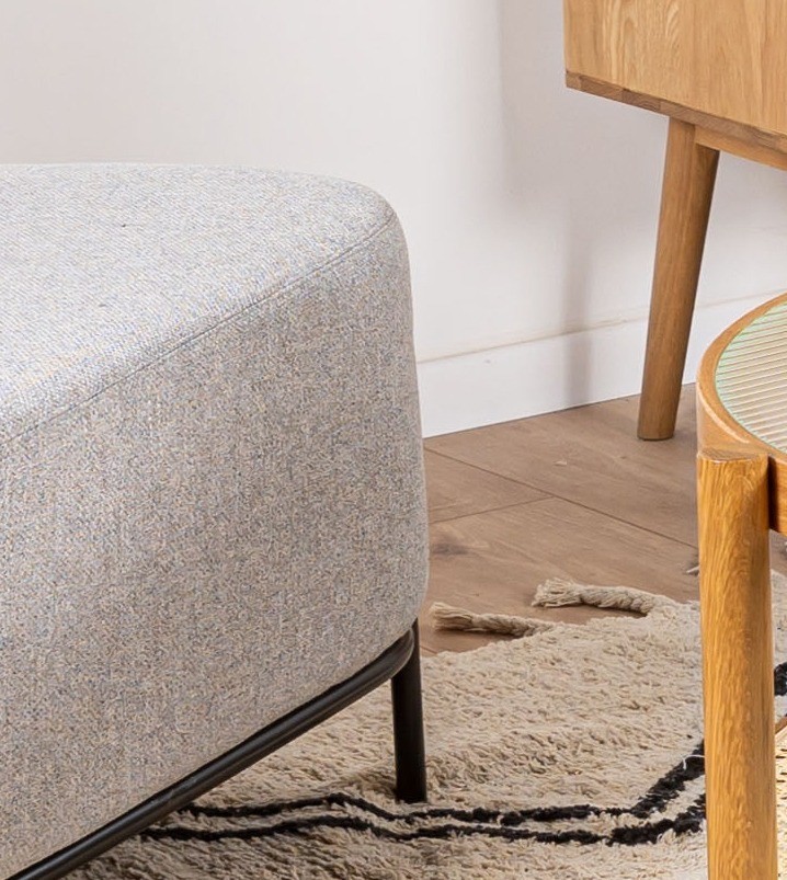 È stato realizzato in poliestere, un materiale resistente al passare del tempo e che non si stropiccia con l'uso, che, abbinato ai cuscini imbottiti con schiuma ad alta densità, risulta nella combinazione perfetta. La sua base è in acciaio laccato nero.