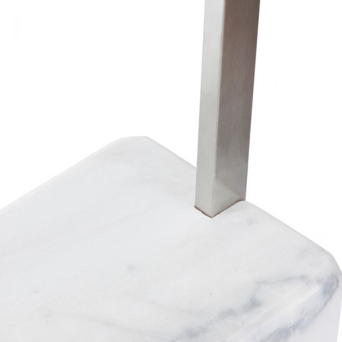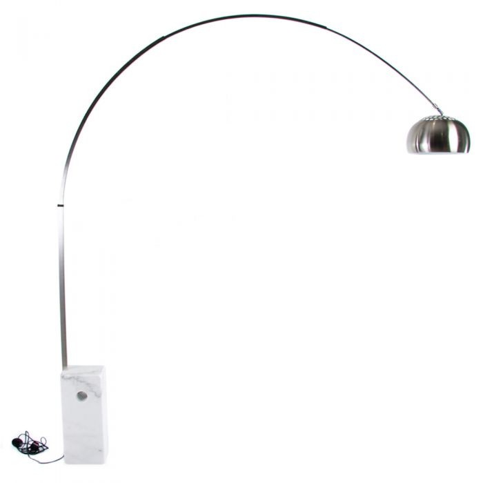 <p>- Lampada disegno<br />- Struttura tubulare quadrata totalmente cromata.<br />- Paralume in acciaio cromato satinato.<br />- Base in marmo da 60kg.</p>