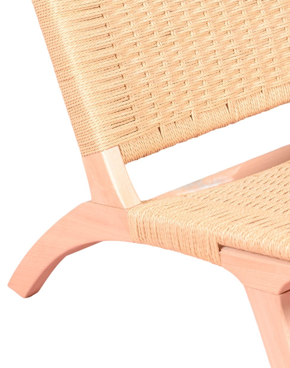 È realizzato in legno massello di faggio e corda naturale , che gli conferiscono una sensazione unica di qualità e durata . Il legno di faggio è noto per la sua resistenza , che assicura che la poltrona duri per anni. La corda naturale utilizzata nella costruzione del sedile e dello schienale è permeabile e resistente , offrendo un'esperienza di seduta confortevole.