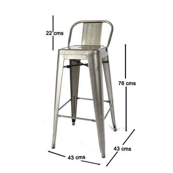 <p><strong>Dimensioni</strong>:<br /><br /> - Larghezza: 43 cm.<br /> - Profondità: 43 cm.<br /> - Altezza seduta: 76 cm.<br /> - Altezza schienale: 22 cm.</p>