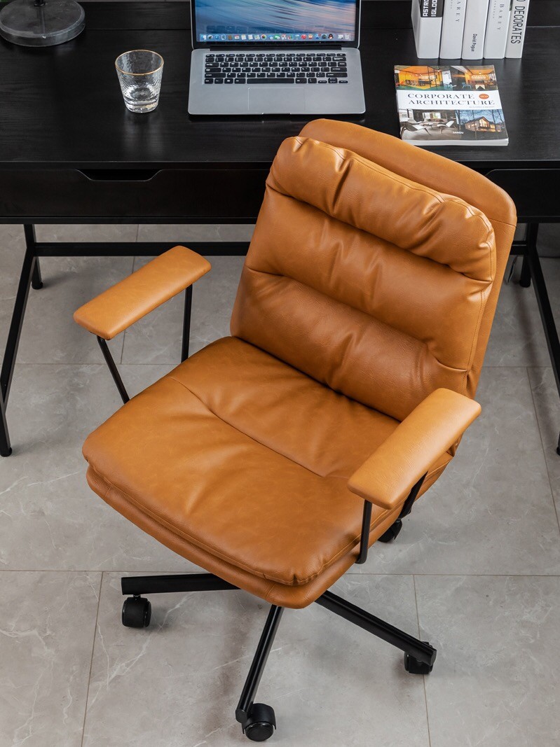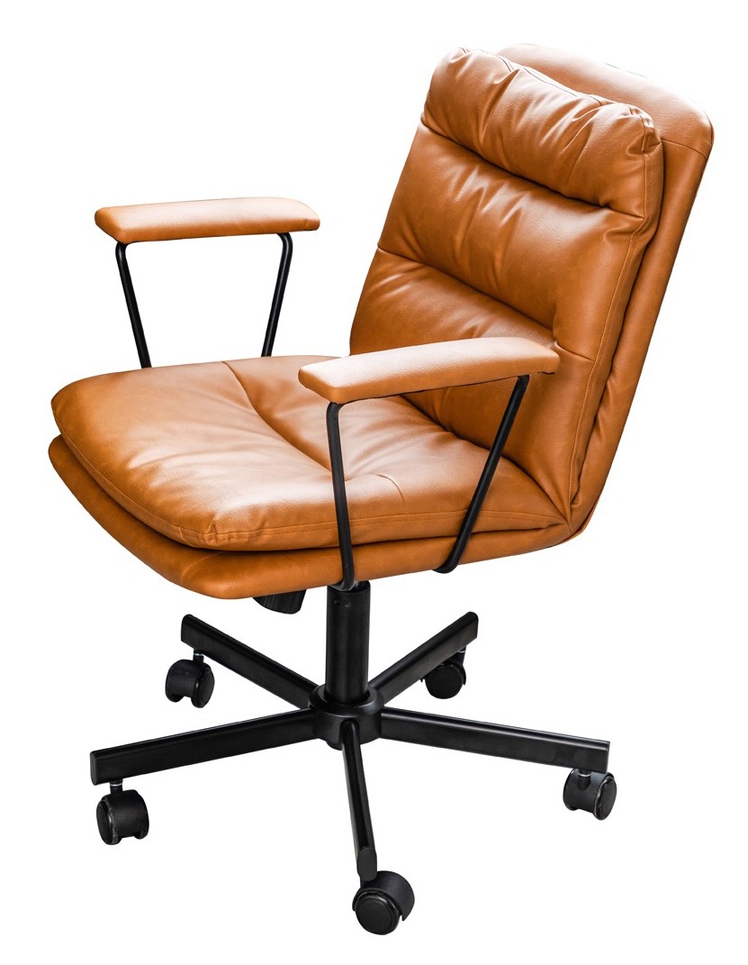 - Sedia da ufficio rivestita in similpelle marrone.