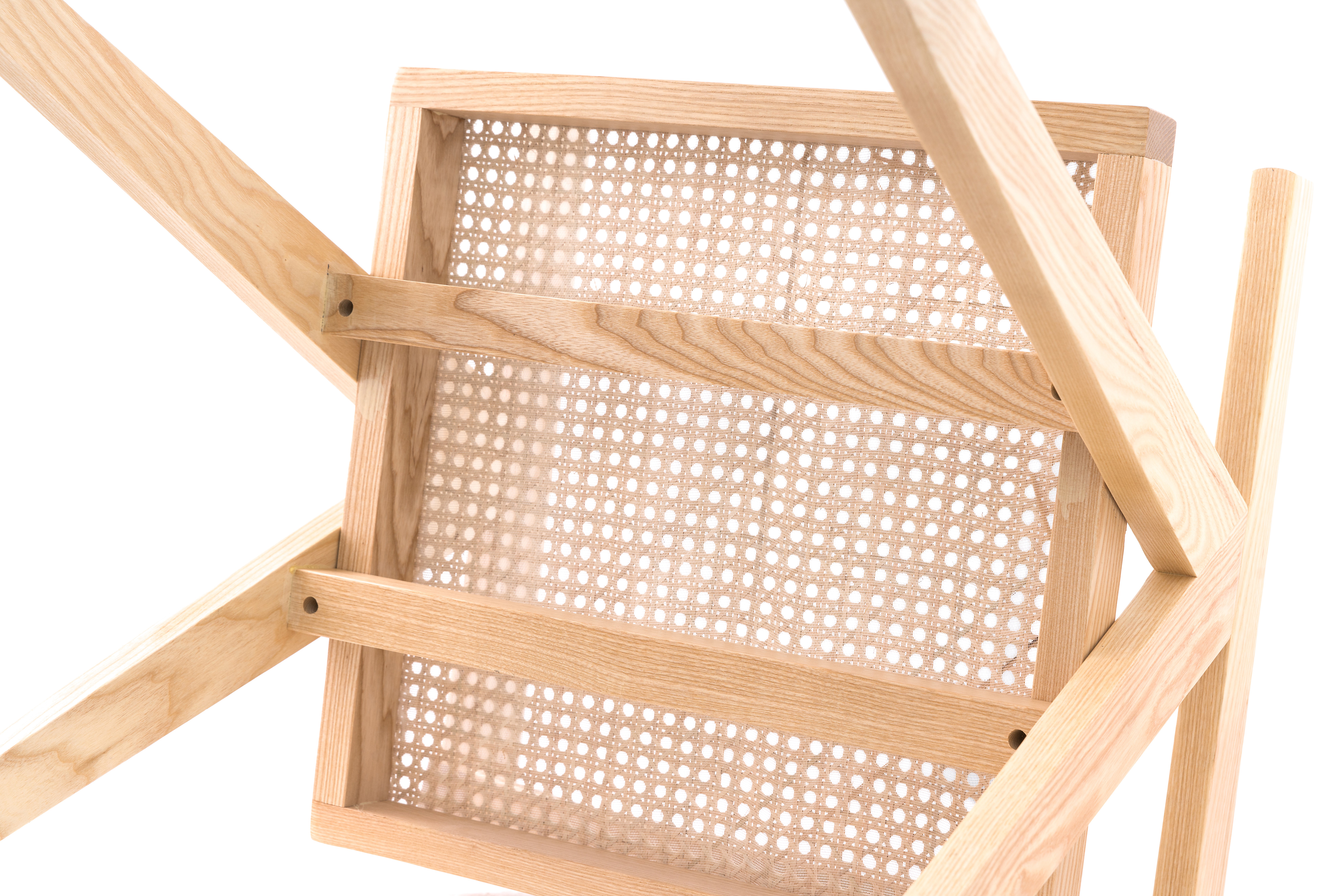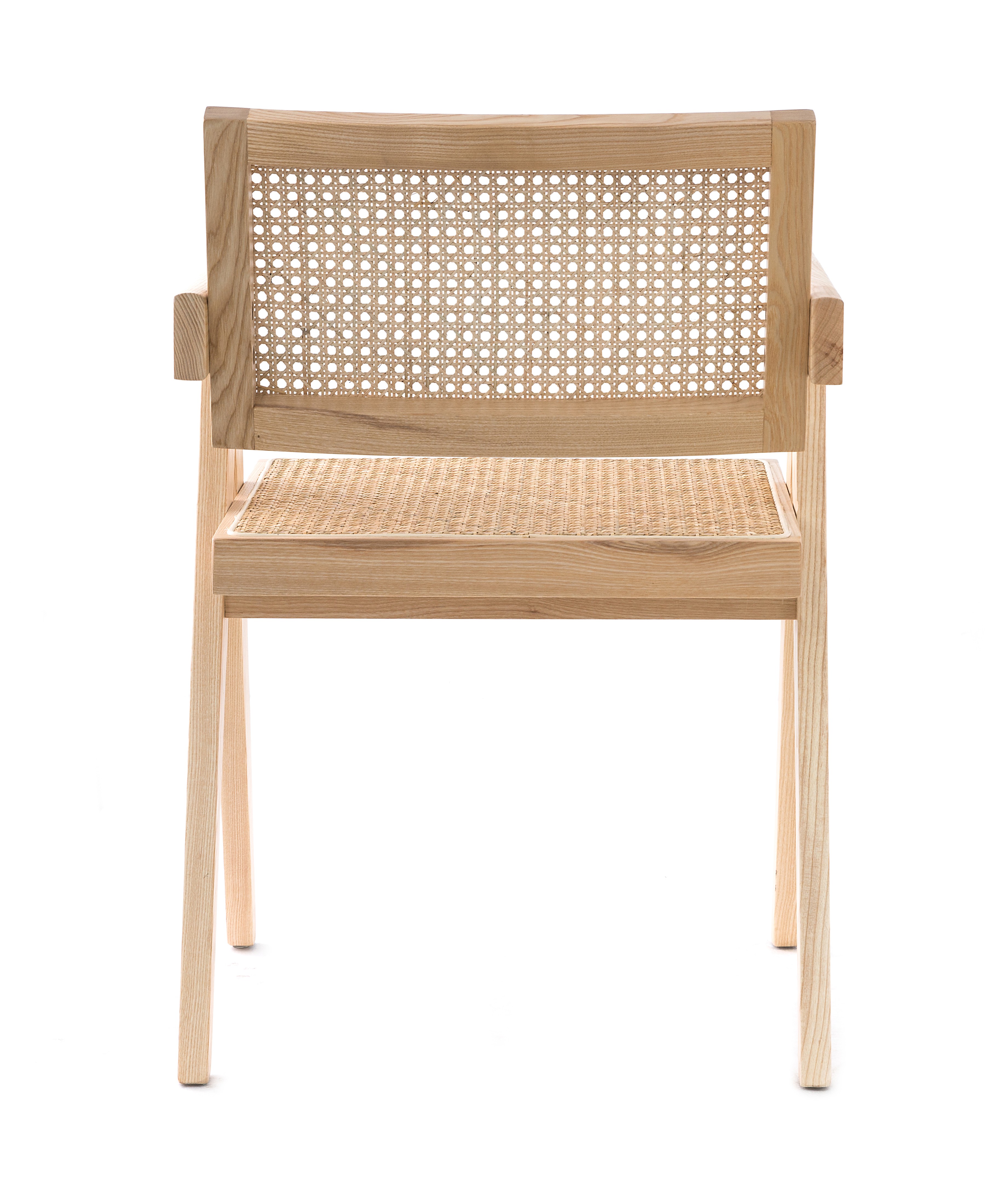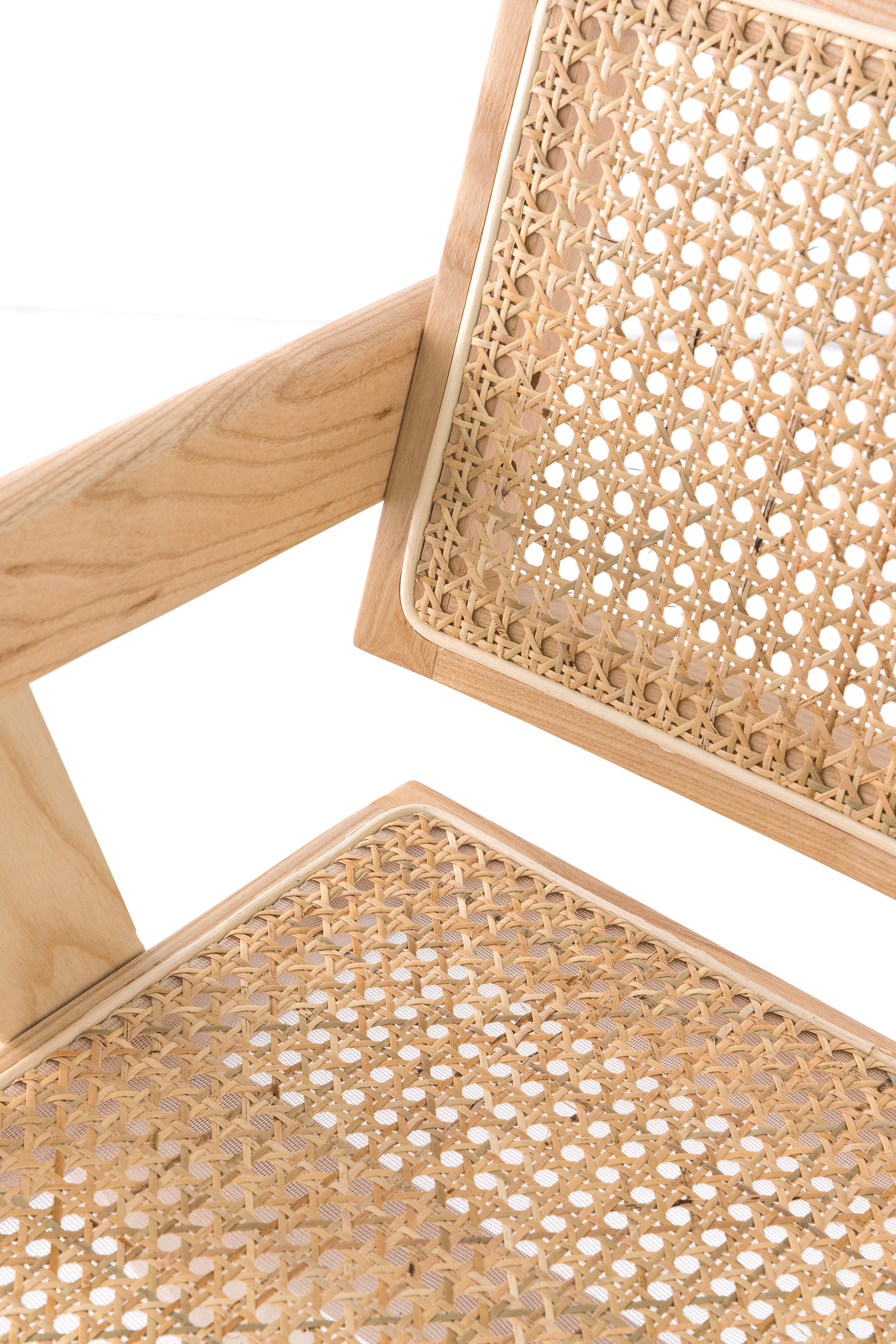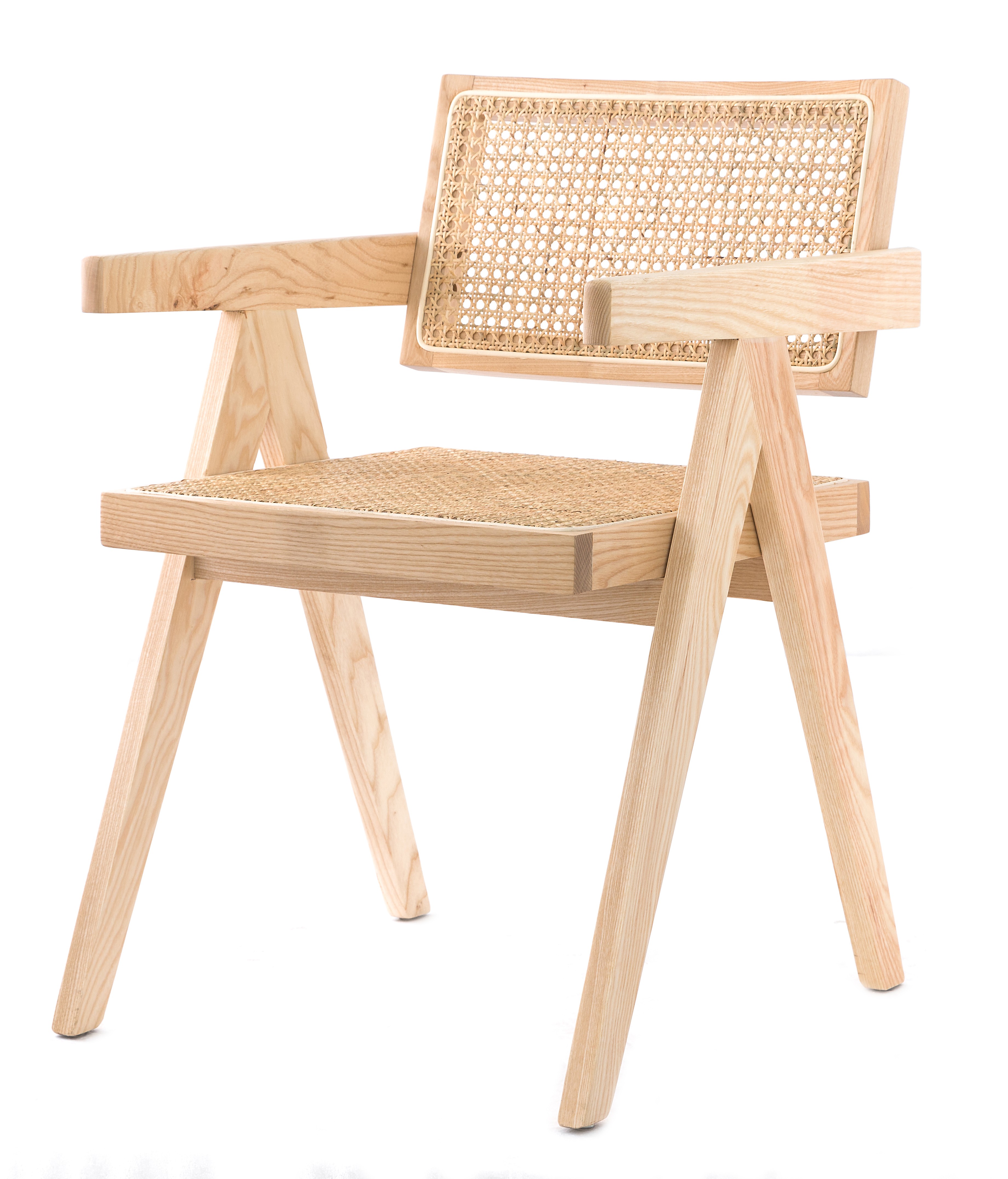 Sedia Compass con Braccioli in Rattan Naturale e Legno di Frassino