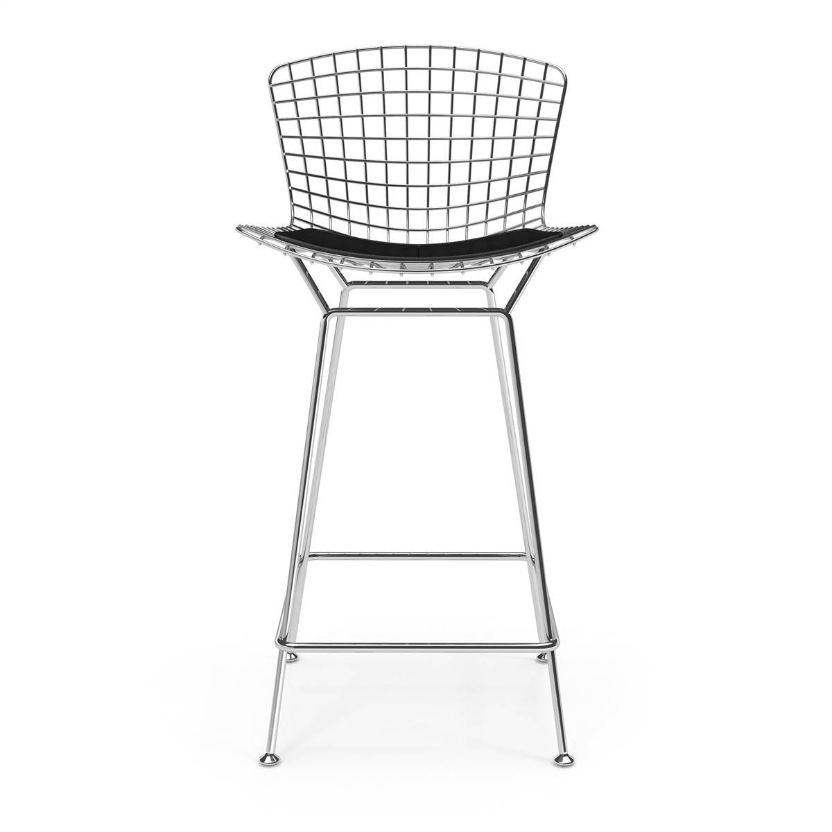 <p>- Ispirato al famoso sgabello di design Bertoia.<br />- Ispirato al design di Harry Bertoia.<br />- Struttura in acciaio cromato.<br />- Cuscino sedile in similpelle bianca o nera.<br />- Disponibili sedie abbinate.</p>