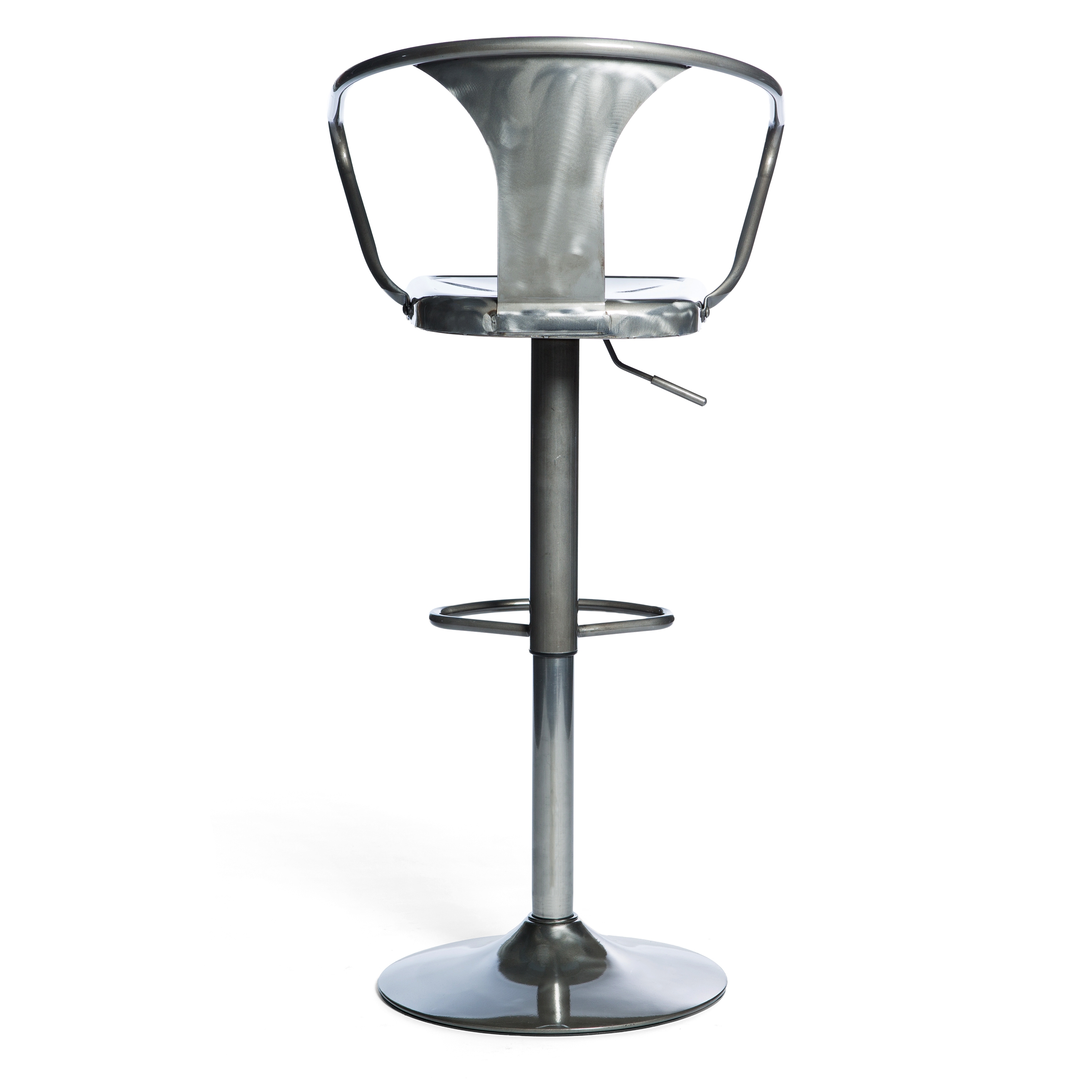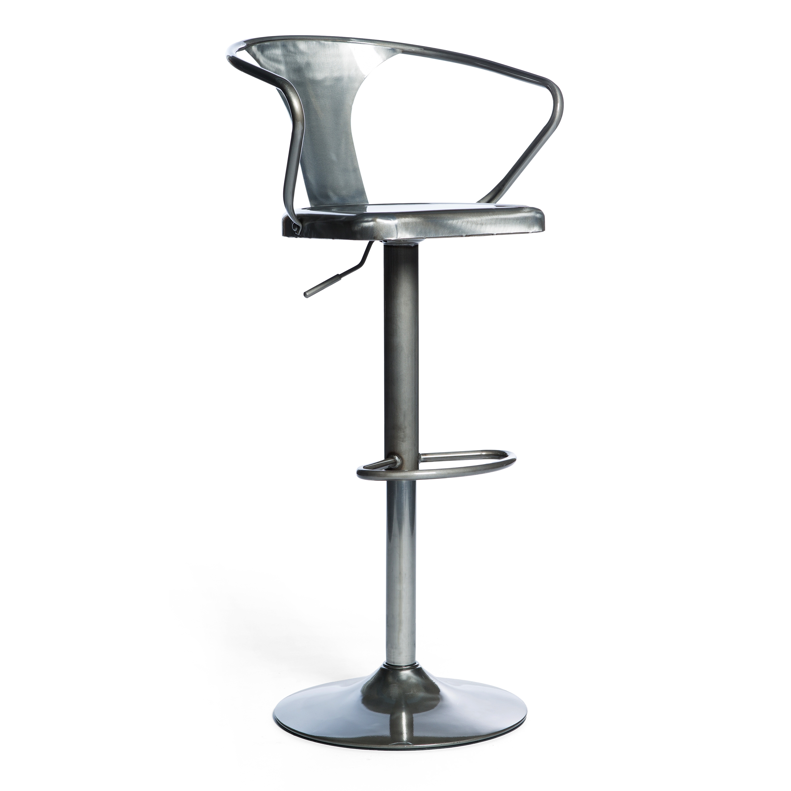 <p>- Sgabello di design industriale regolabile.<br />- Struttura in acciaio.<br />- Regolabile in altezza mediante pistone a gas.<br />- Poggiapiedi e base metallica.</p>
